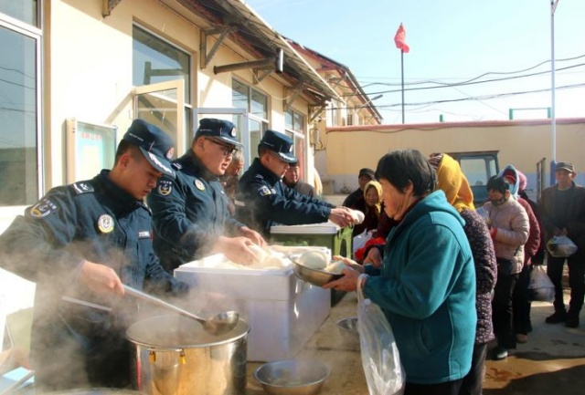 北风酷寒,却挡不住热情暖意。在蓬莱区刘家沟镇三赵村,村委大院青砖瓦房前,只见“爱心餐车”前队伍长列、人头攒动,蓬莱工作站几名执法员分工协作,生火、蒸饭、炒菜。午间时分,美味飘香。“恁这芸豆炖排骨真香!”村民们搭手分餐、喜笑颜开。这是该站深入开展乡村振兴活动的热闹场景。